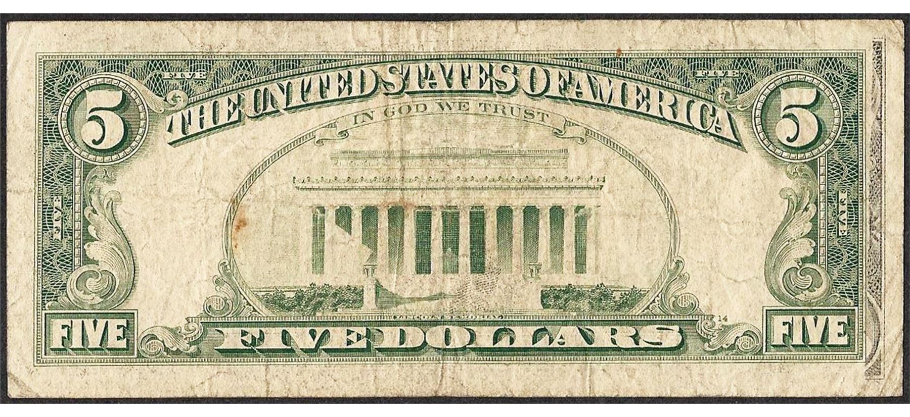 One 1985 $5 Federal Reserve Partial Offset ERROR Note.