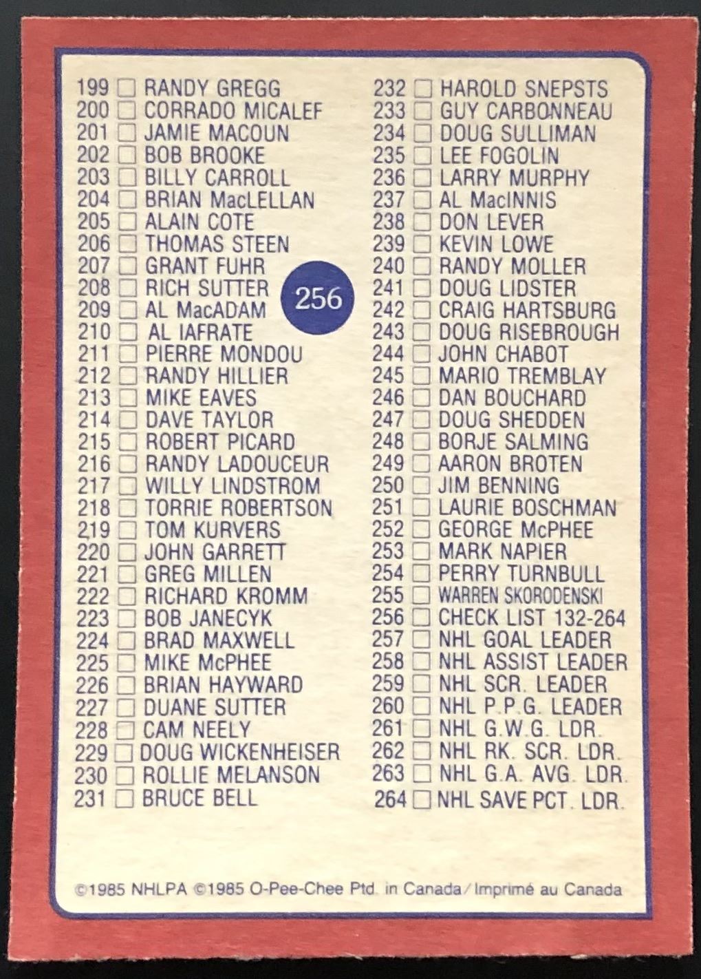 Card #256 NHL, hockey, OPC, vintage