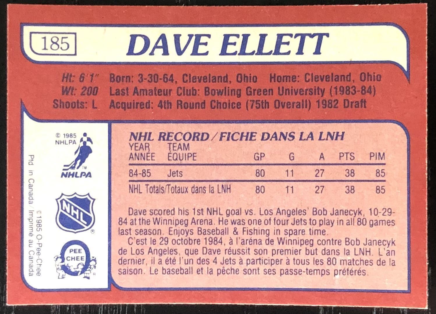 Card #185 NHL, hockey, OPC, vintage, rookie