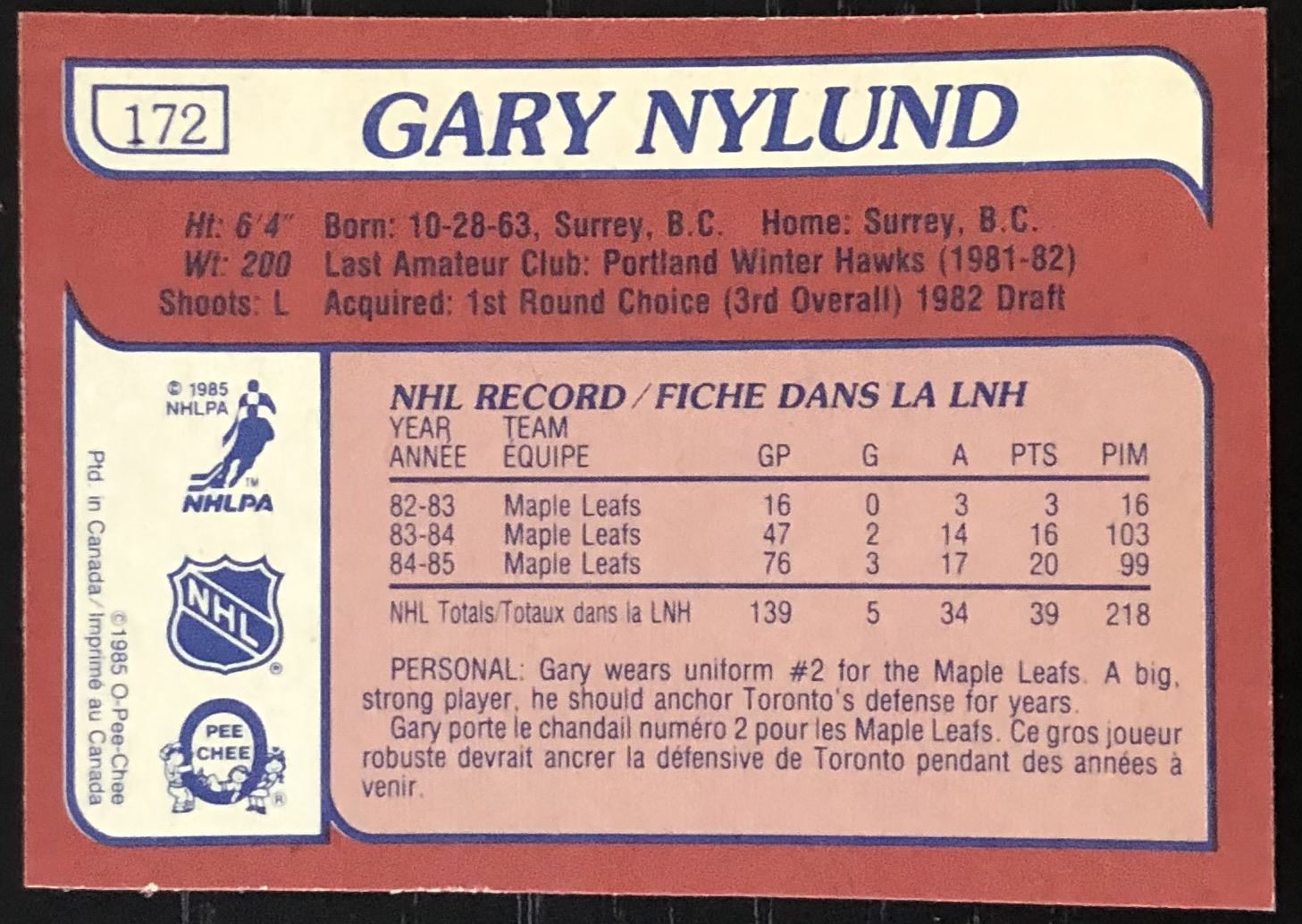 Card #172 OPC, NHL, hockey, vintage