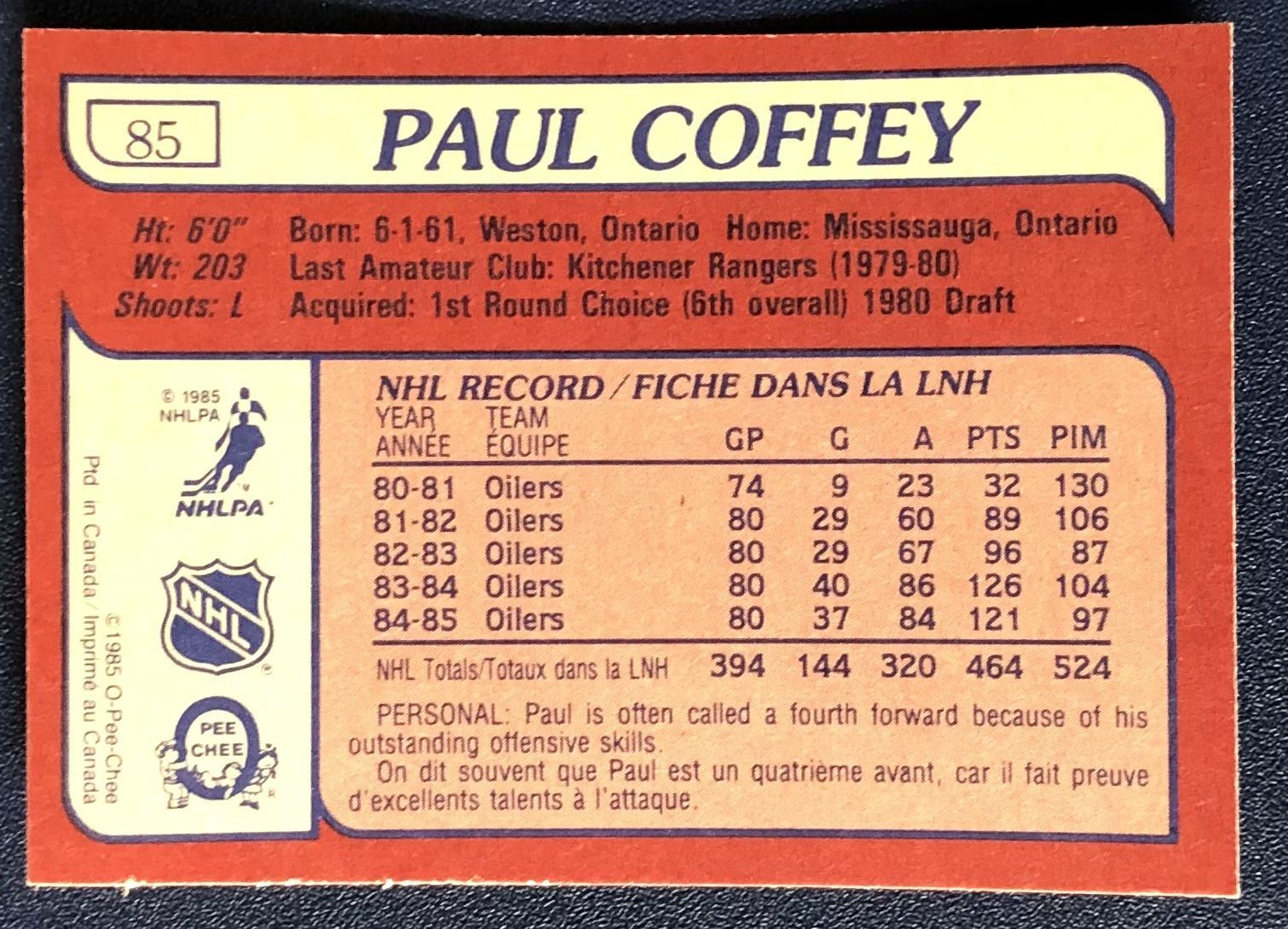 Card #85 vintage, hockey, NHL, OPC, hall of fame