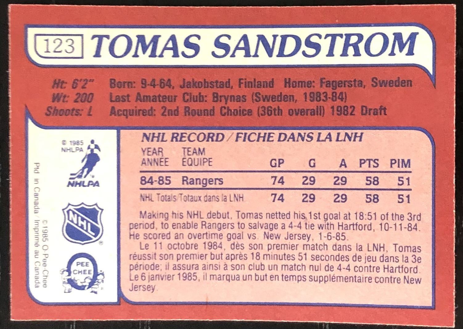 Card #123 NHL, hockey, OPC, vintage, rookie