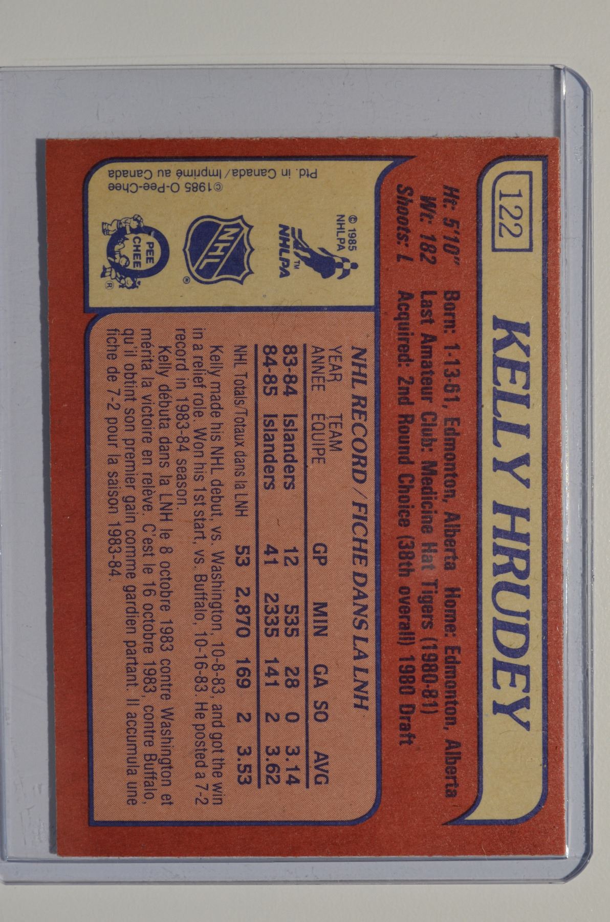 1985-86 O-Pee-Chee #122 Kelly Hrudey RC
