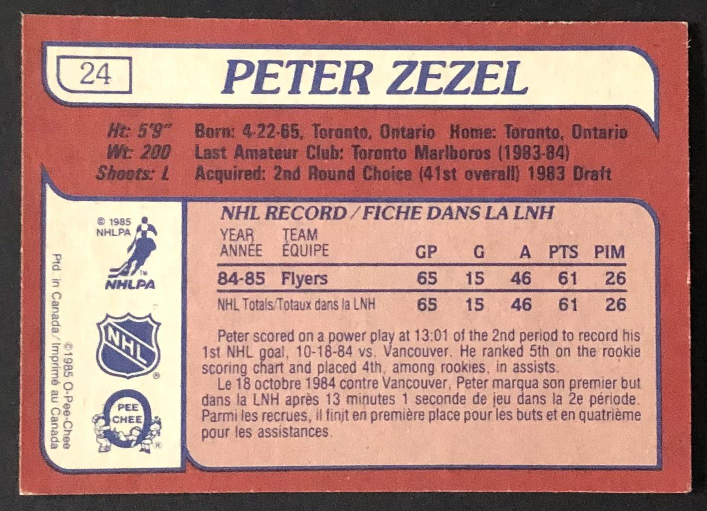 Card #24 hockey, OPC, vintage, rookie