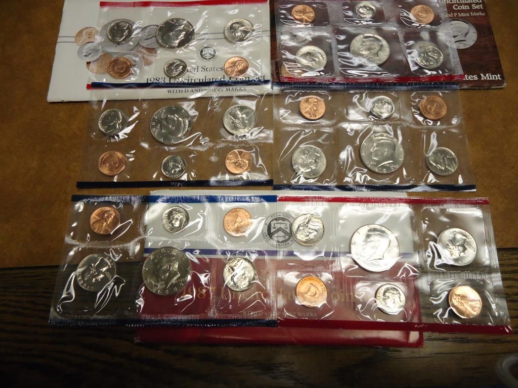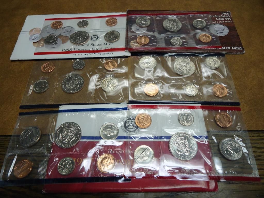 1985,87 & 88 US MINT SETS (UNC) P/D WITH ENVELOPES