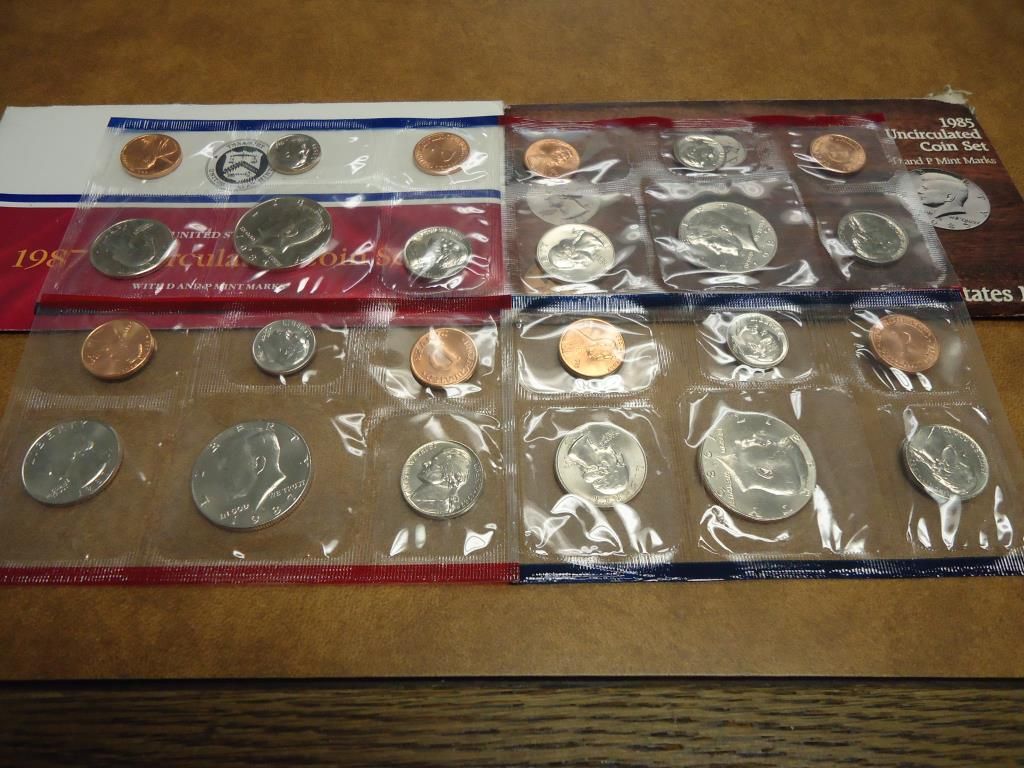 1985 & 87 US MINT SETS P/D (WITH ENVELOPES)