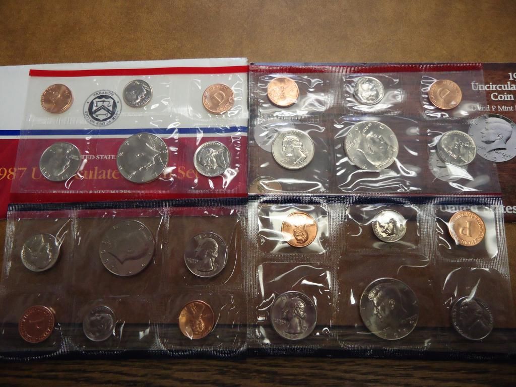1985 & 87 US MINT SETS (UNC) P/D (WITH ENVELOPES)