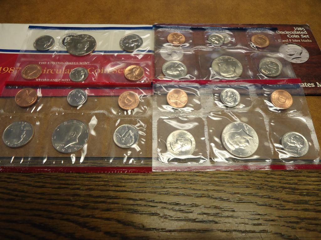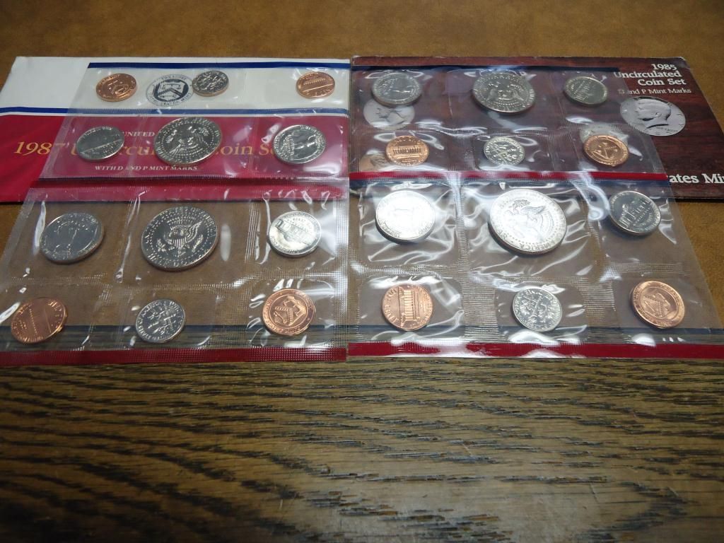 1985 & 87 US MINT SETS (UNC) P/D (WITH ENVELOPES)