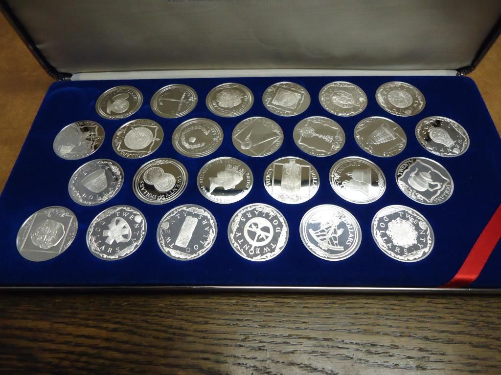 CARIBBEAN" , 25-$20 STERLING SILVER PROOF COINS IN CASE OF ISSUE, EACH COIN IS .5677 OZ. ASW