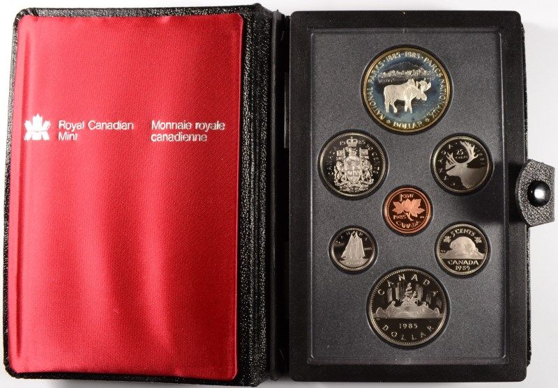 1985 CANADIAN PROOF SET, DOUBLE DOLLARS, WITH BOX/COA, ONE DOLLAR IS SILVER