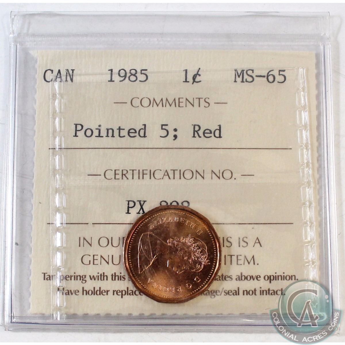 1985 Canada 1-cent Pointed 5 ICCS Certified MS-65 Red