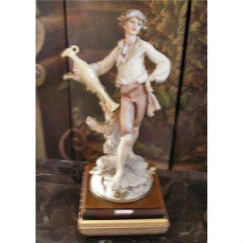 Giuseppe Armani Master Artist & Sculpture:<p>Beautiful depiction of a young boy with an Urn. Rare collectible. Retired piece and I have not been able to find the exact # or name of this sculpture. Mint Condition. The young peasant boy is barefoot in country attire. His face is serene and the young man stunningly beautiful.<p>Mounted on a plinth, the figure's height is 14 " and measures 7-1/2" from urn to right shoulder. Base is 6" square. Capodimonte trademark N + crown hand painted on the rear, it's in excellent condition along with G Armani brass plate and embedded signature. Cold Cast Porcelain Sculpture.