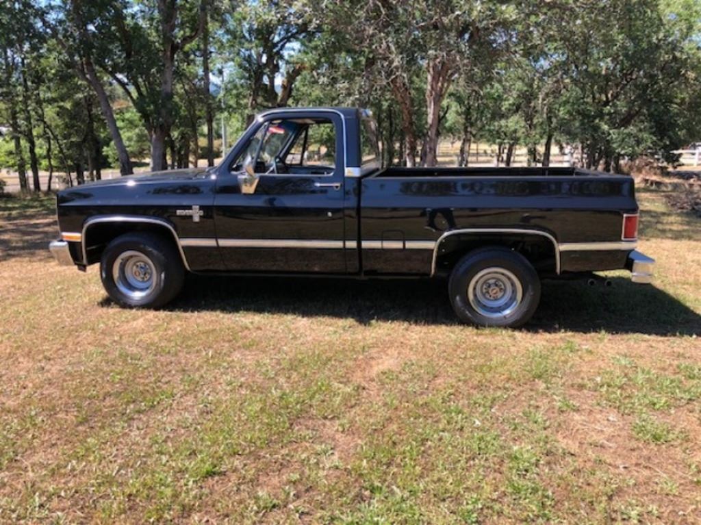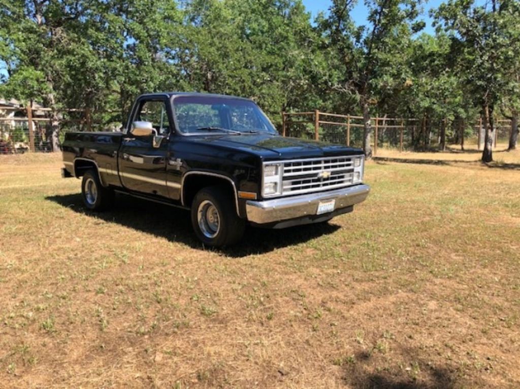 BEAUTIFUL ORIGINAL 1985 CHEVROLET C10 FLEET SIDE PICKUP. Silverado. Tilt wheel. Beautiful Black paint. Original interior. Factory Rally Wheels. All original truck uncut. Factory v8 engine. Automatic Transmission. 2 Owner truck. Super clean inside and out. Body has a super flat finish. Hard to find a nicer original truck. Factory Air Condition. Factory Smog still intact
