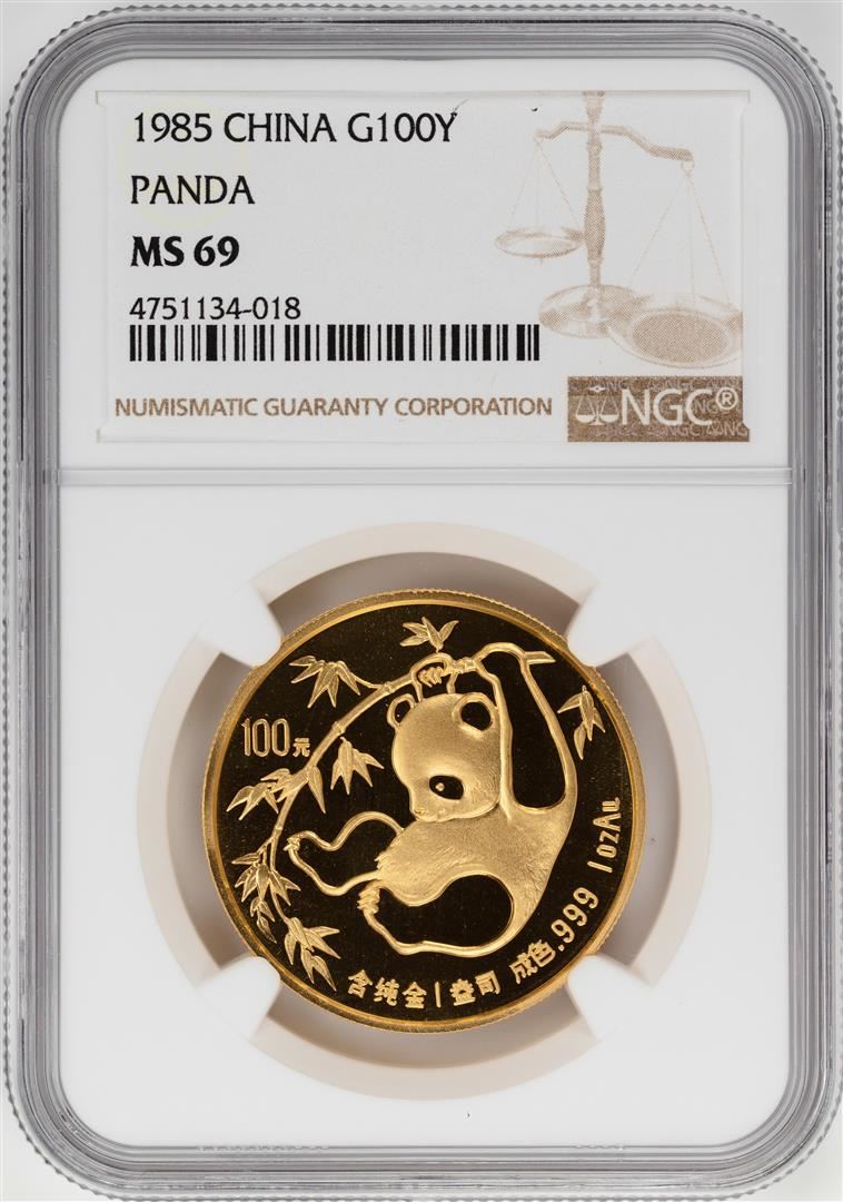 One 1985 China 100 Yuan Panda Gold Coin NGC MS69. NGC Certified.
