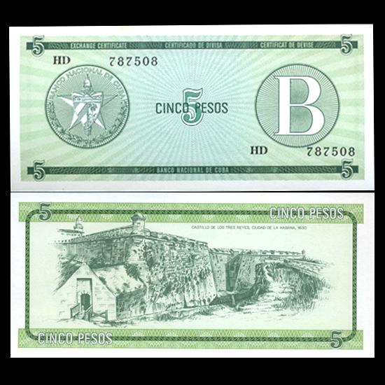 1985 Cuba 5 Peso Foreign Exchange Crisp Uncirculated Note RARE Series B (CUR-05960)