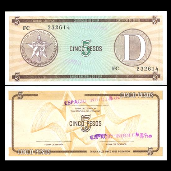 1985 Cuba 5 Peso Foreign Exchange Crisp Uncirculated Note RARE Series D2 (CUR-05967)