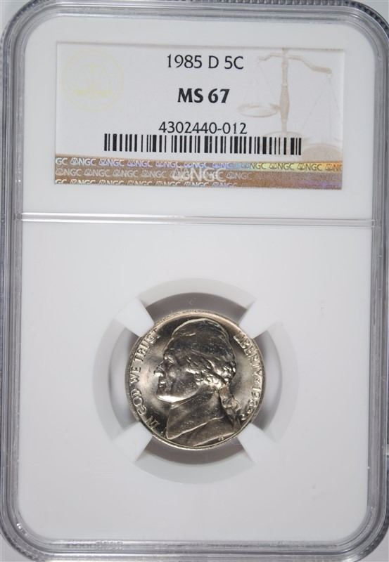 1985-D JEFFERSON NICKEL NGC MS67 POPULATION 4 , NONE HIGHER, SO RARE NO PRICE