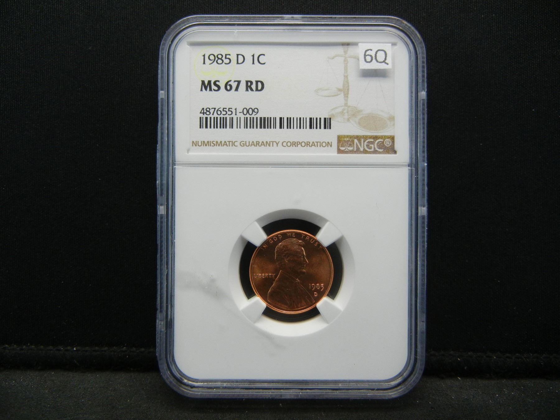 1985 D Lincoln Cent, NGC MS67 RD