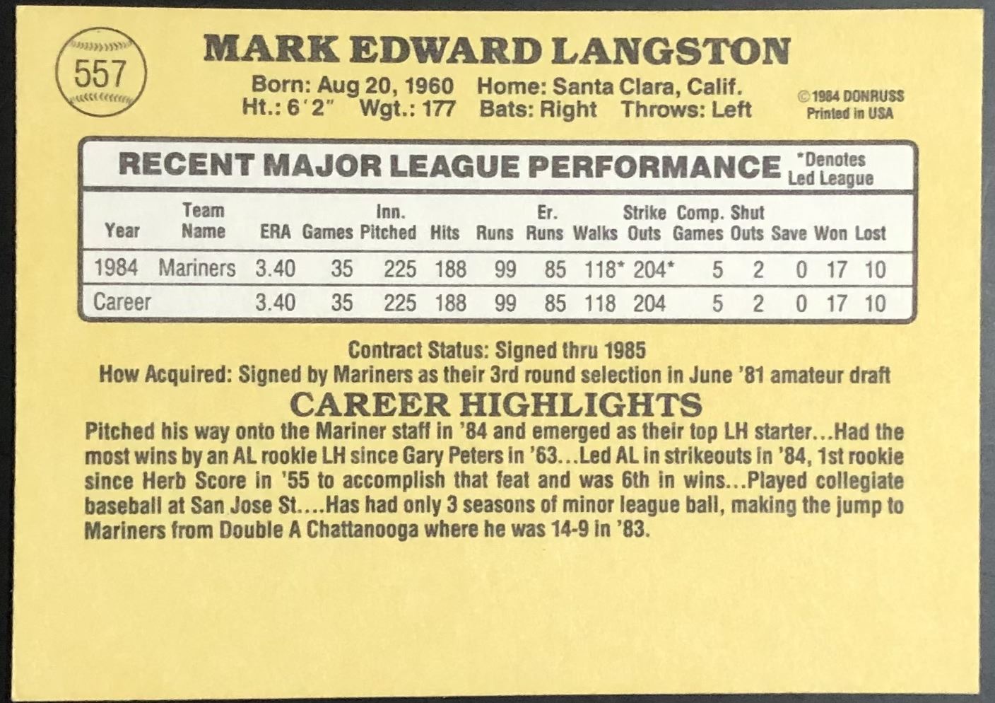 Card #557 MLB, baseball, rookie