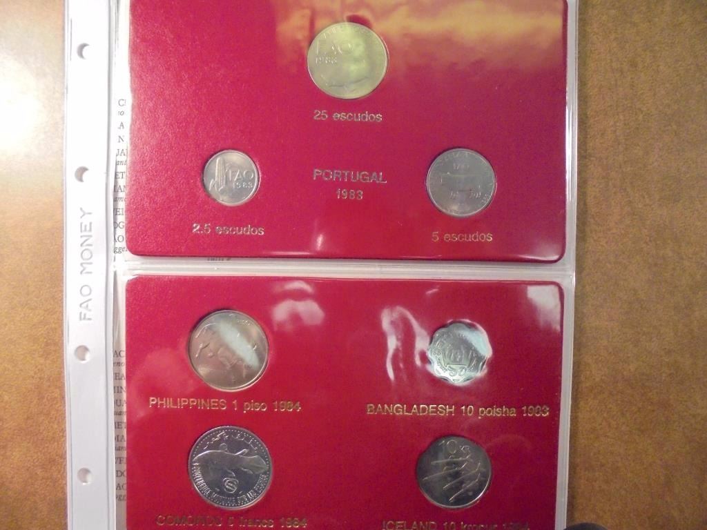CONTAINS: 1983 PORTUGAL 2 1/2, 5 & 25 ESCUDOS AND 1984 PHILIPINNES 1 PISO, 1983 BANGLADESH 10 POISHA, 1984 COMOROS 5 FRANCS AND 1984 ICELAND 10 KRONUR.