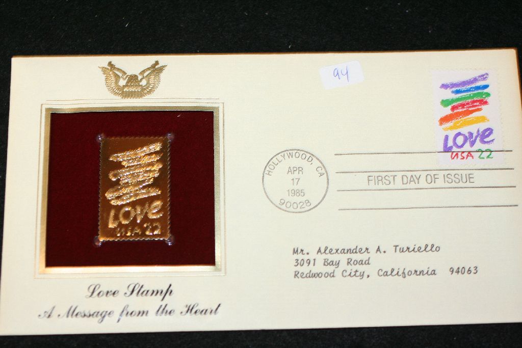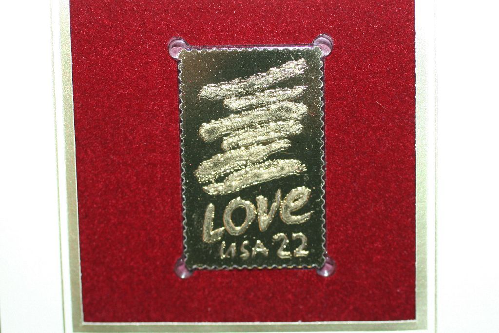 1985 First Day Issue 22K Gold Replica Stamp W/Postal Stamp; Love Stamp A Message From The Heart