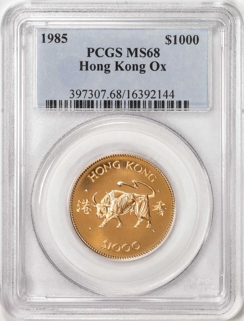 One 1985 Hong Kong $1000 Ox Gold Coin PCGS MS68.