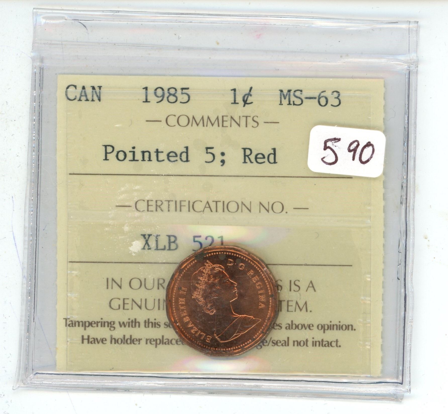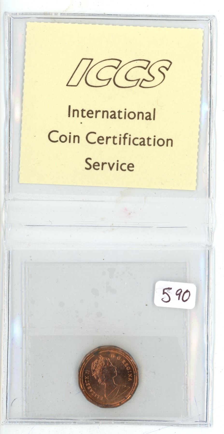 1985 ICCS graded, Canadian red 1 cent penny coin - MS63