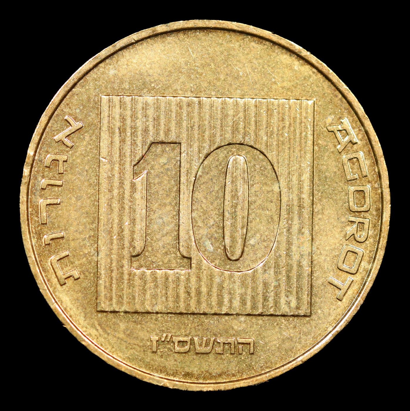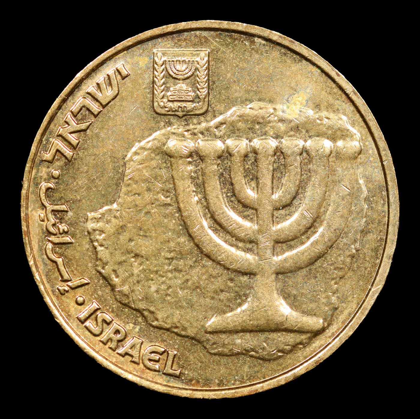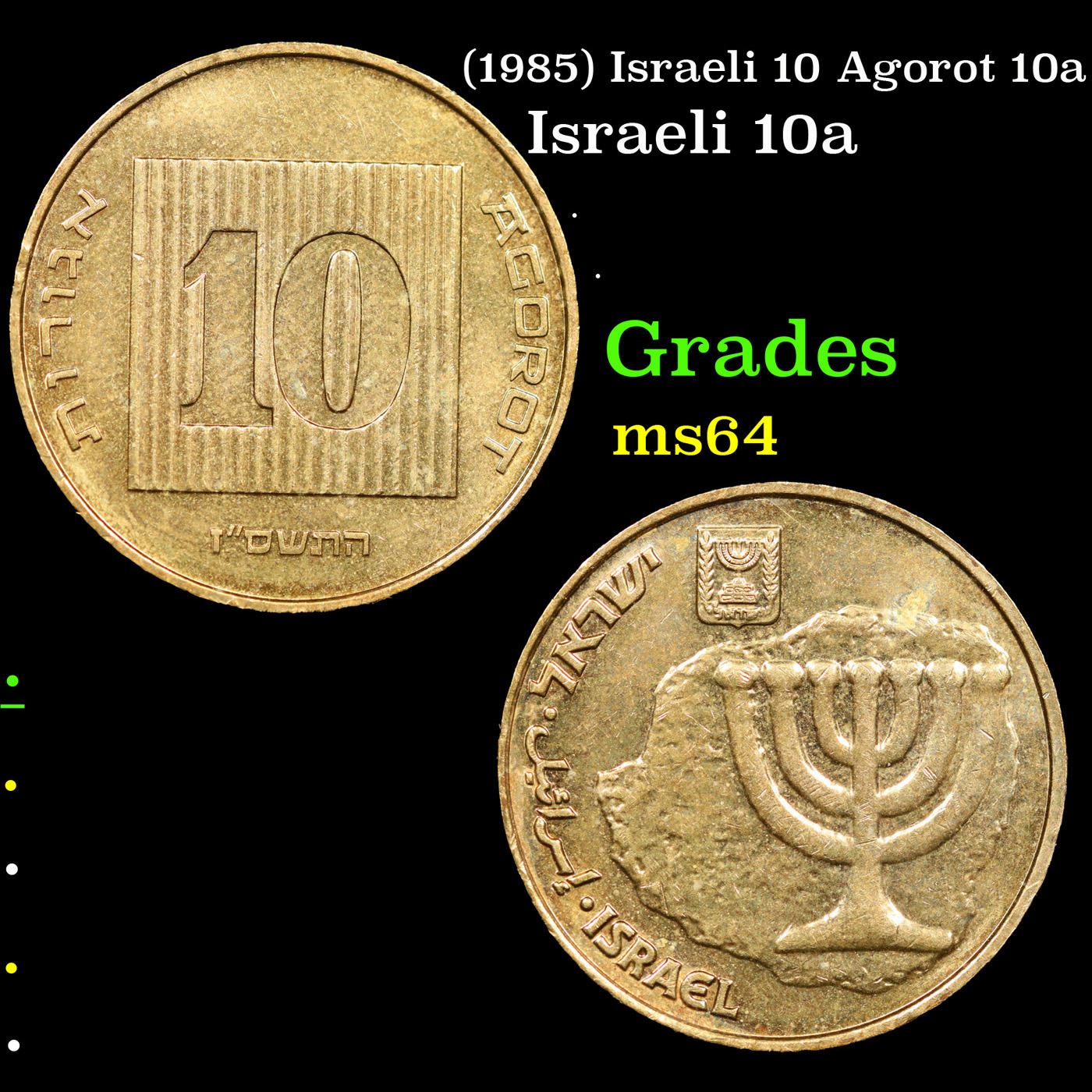 (1985) Israeli 10 Agorot 10a Grades Choice Unc. The obverse of this coin is a replica of a coin issued by King Amtigonus II Mattathias, the last king of Judea (died 37 BC) with the state emblem the Menorah on Reverse.