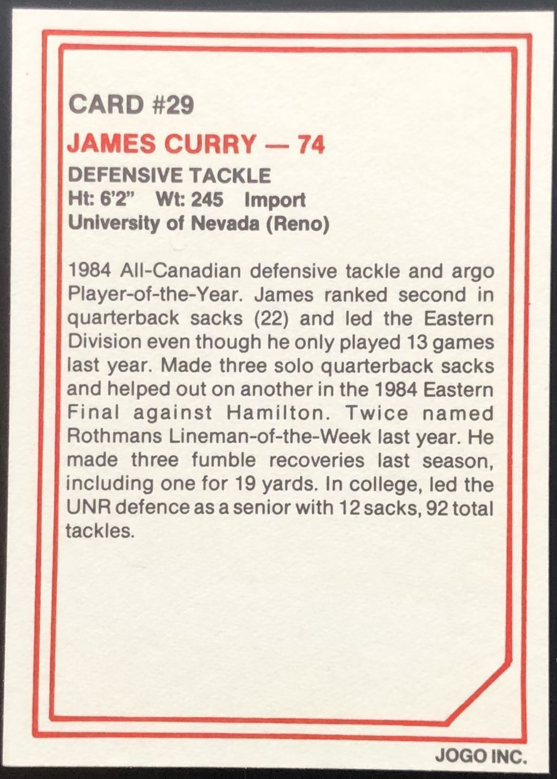 Card #29 CFL, football, vintage, hall of fame