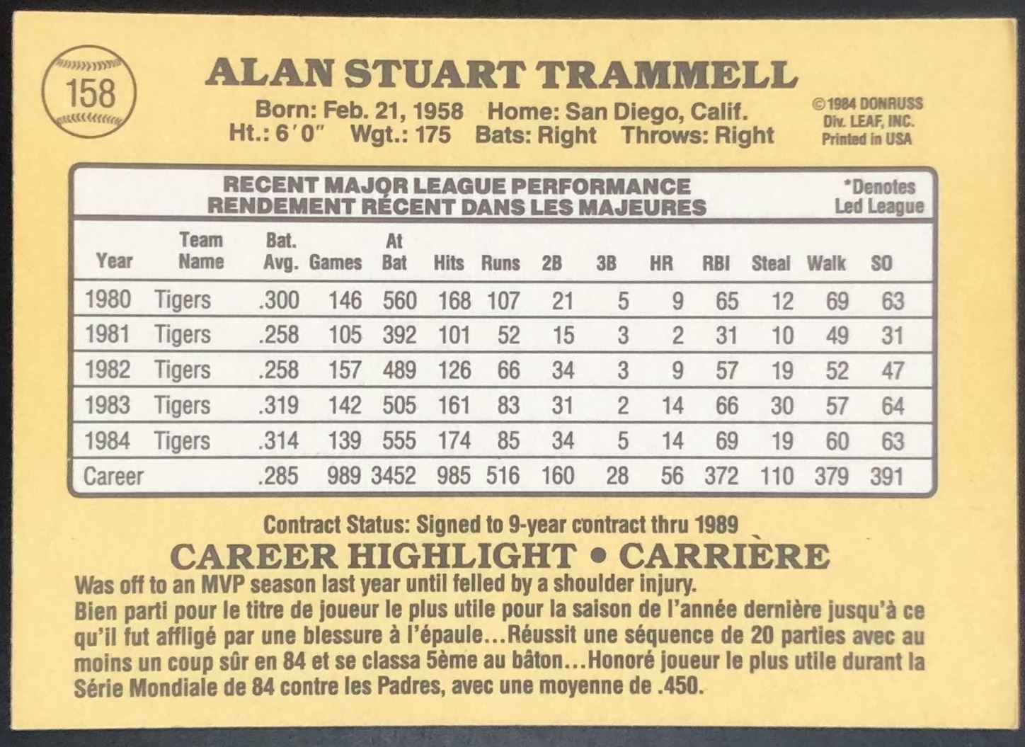 Card #158 Donruss, baseball, MLB, vintage, hall of fame