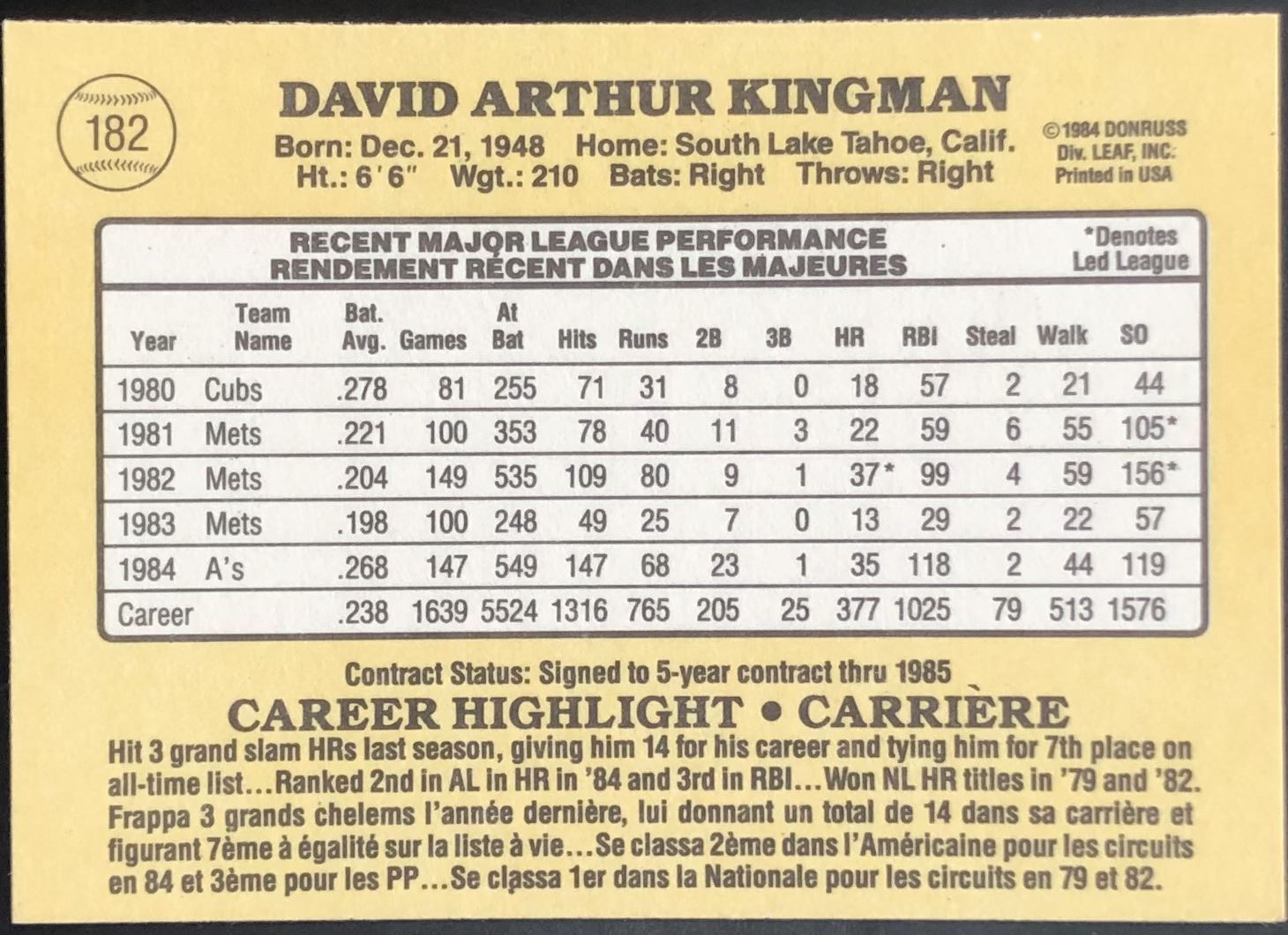 Card #182 Donruss, baseball, MLB, vintage