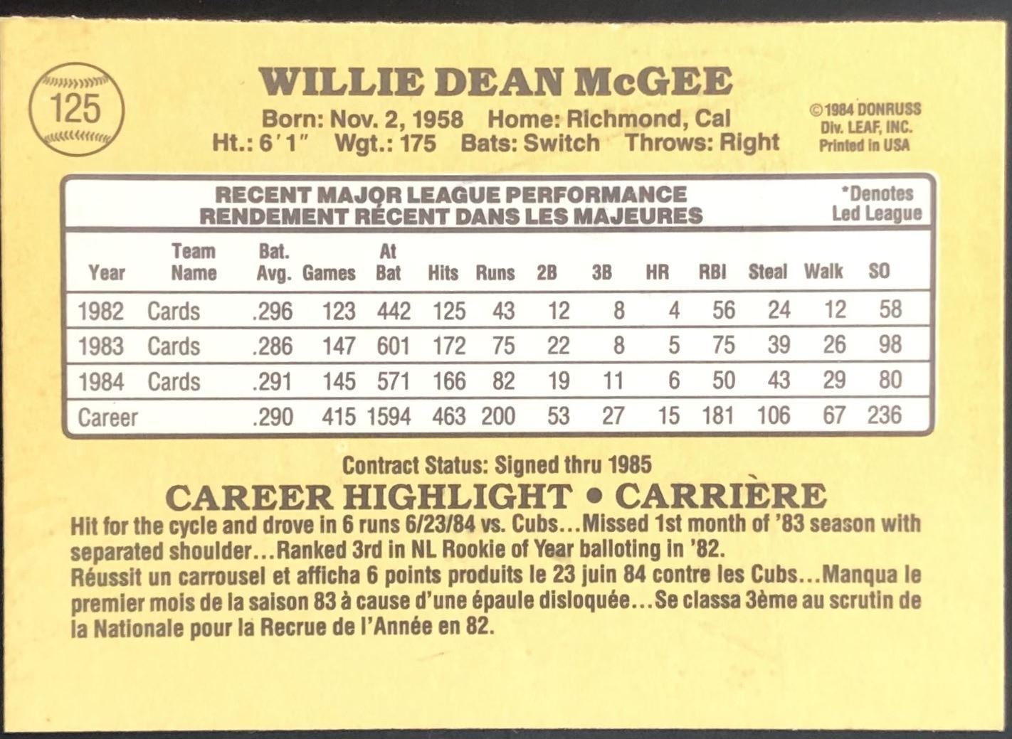 Card #125 Donruss, baseball, MLB, vintage