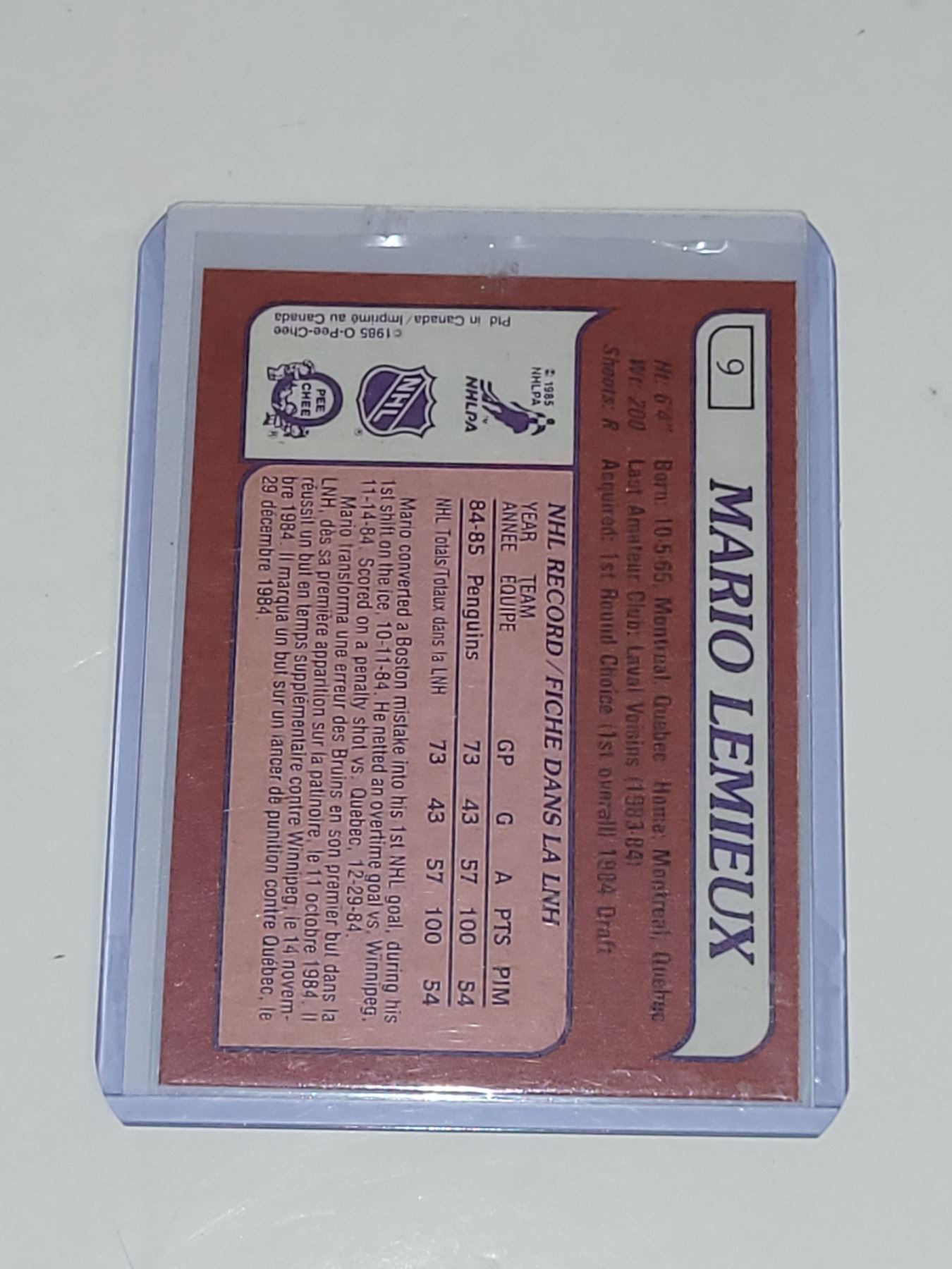 1985 O-Pee-Chee Mario Lemieux #9 Rookie Card - Excellent-Mint Conditon