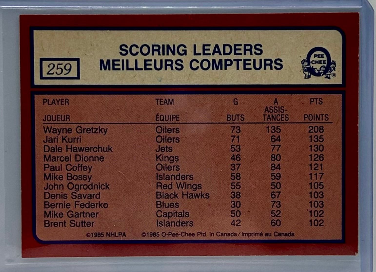 1985 O-Pee-Chee Wayne Gretzky Scoring Leaders #259