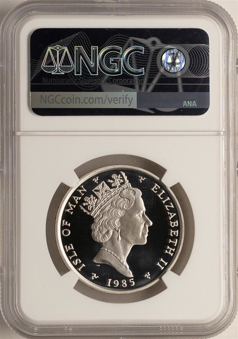One 1985 Proof Platinum Isle of Man Noble Coin NGC PF70 Ultra Cameo. NGC Certified.