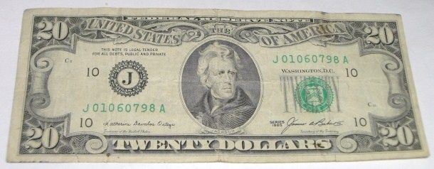 1985 SERIES $20 *OLD FACE JACKSON* U.S. BILL SERIAL # J01060798A *NICE EARLY U.S. BILL*!! BILL CAME OUT OF SAFE!! ***Coin, Currency & All Items Listed in this auction - Grades, Conditions and Values are not Safe Deposit Coins LLC Responsibilty. Grades, Condition and Values are determined by Consigner(s) & Buyers ONLY