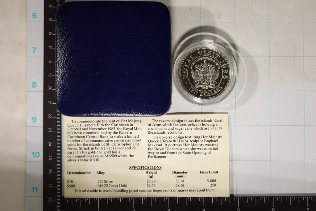 ROYAL VISIT PROOF $10 COMMEMORATIVE CROWN. 28.28 GRAMS LIMITED EDITION OF ONLY 5000, IN HARD PLASTIC CAPSULE WITH CERTIFICATE IN ORIGINAL ROYAL MINT PACKAGING