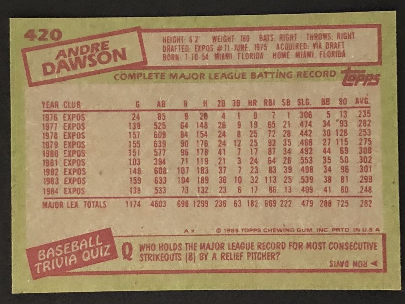 Card #420 baseball, vintage, hall of fame