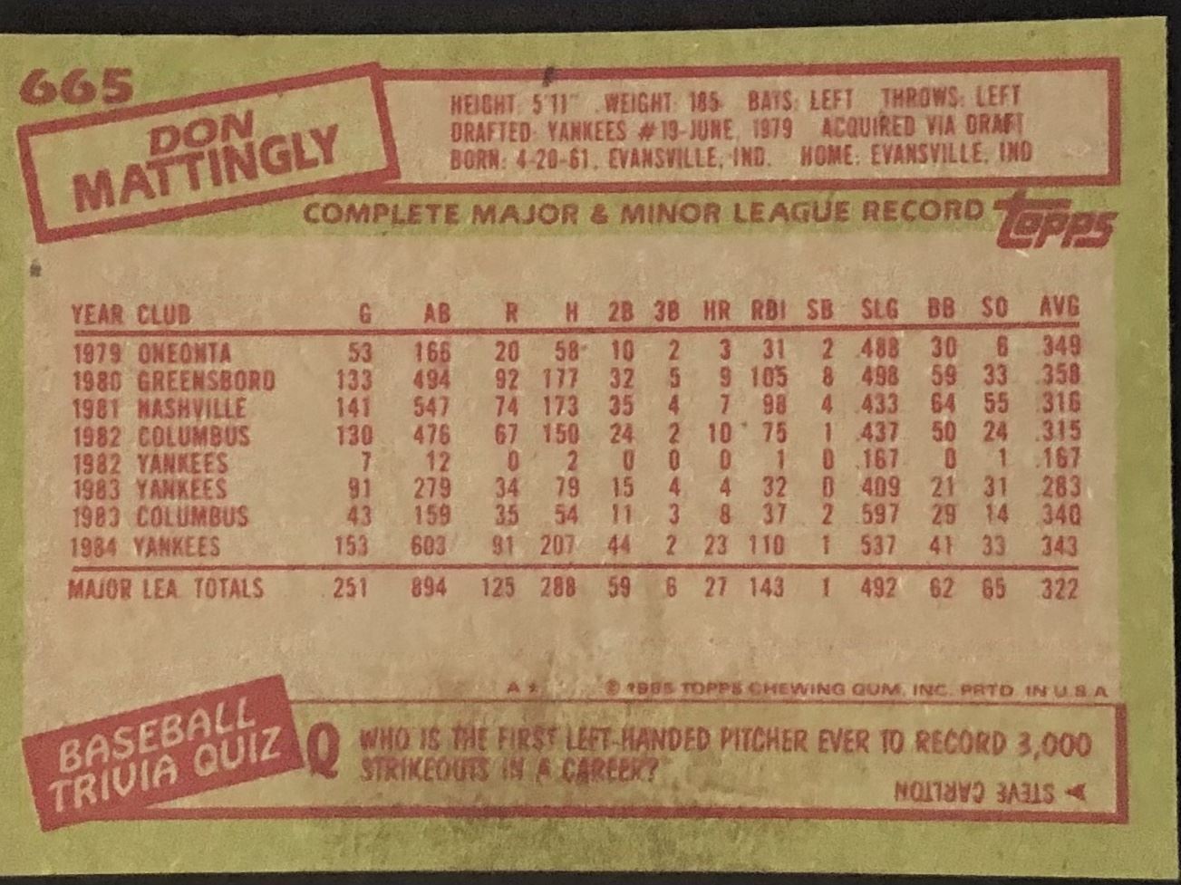 Card #665 baseball, vintage