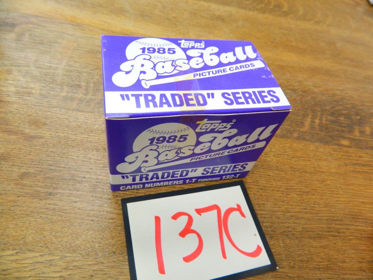 1985 Topps Traded is a 132-card factory set released exclusively to Hobby outlet. 1T Don Aase 2T Bill Almon 3T Benny Ayala 4T Dusty Baker 5T George Bamberger MG 6T Dale Berra 7T Rich Bordi 8T Daryl Boston 9T Hubie Brooks 10T Chris Brown 11T Tom Browning XRC 12T Al Bumbry 13T Ray Burris 14T Jeff Burroughs 15T Bill Campbell 16T Don Carman 17T Gary Carter 18T Bobby Castillo 19T Bill Caudill 20T Rick Cerone 21T Bryan Clark 22T Jack Clark 23T Pat Clements 24T Vince Coleman XRC 25T Dan Collins 26T Danny Darwin 27T Jim Davenport MG 28T Gerry Davis 29T Brian Dayett 30T Ivan DeJesus 31T Ken Dixon 32T Mariano Duncan XRC 33T John Felske MG 34T Justin Fitzgerald 35T Ray Fontenot 36T Greg Gagne 37T Oscar Gamble 38T Scott Garrelts 39T Bob Gibson 40T Jim Gott 41T David Green 42T Alfredo Griffin 43T Ozzie Guillen XRC 44T Eddie Haas MG 45T Terry Harper 46T Toby Harrah 47T Greg Harris 48T Ron Hassey 49T Rickey Henderson 50T Steve Henderson 51T George Hendrick 52T Joe Hesketh 53T Teddy Higuera XRC 54T Donnie Hill 55T Al Holland 56T Burt Hooton 57T Jay Howell 58T Ken Howell 59T La Marr Hoyt 60T Tim Hulett 61T Bob James 62T Steve Jeltz 63T Cliff Johnson 64T Howard Johnson 65T Ruppert Jones 66T Steve Kemp 67T Bruce Kison 68T Alan Knicely 69T Mike LaCoss 70T Lee Lacy 71T Dave LaPoint 72T Gary Lavelle 73T Vance Law 74T Johnnie LeMaster 75T Sixto Lezcano 76T Tim Lollar 77T Fred Lynn 78T Billy Martin MG 79T Ron Mathis 80T Len Matuszek 81T Gene Mauch MG 82T Oddibe McDowell 83T Roger McDowell 84T John McNamara MG 85T Donnie Moore 86T Gene Nelson 87T Steve Nicosia 88T Al Oliver 89T Joe Orsulak 90T Rob Picciolo 91T Chris Pittaro 92T Jim Presley 93T Rick Reuschel 94T Bert Roberge 95T Bob Rodgers MG 96T Jerry Royster 97T Dave Rozema 98T Dave Rucker 99T Vern Ruhle 100T Paul Runge 101T Mark Salas 102T Luis Salazar 103T Joe Sambito 104T Rick Schu 105T Donnie Scott 106T Larry Sheets 107T Don Slaught 108T Roy Smalley 109T Lonnie Smith 110T Nate Snell 111T Chris Speier 112T Mike Stenhouse 113T Tim Stoddard 114T Jim Sundberg 115T Bruce Sutter 116T Don Sutton 117T Kent Tekulve 118T Tom Tellmann 119T Walt Terrell 120T Mickey Tettleton XRC 121T Derrel Thomas 122T Rich Thompson 123T Alex Trevino 124T John Tudor 125T Jose Uribe 126T Bobby Valentine MG 127T Dave Von Ohlen 128T U.L. Washington 129T Earl Weaver MG 130T Ed Whitson 131T Herm Winningham