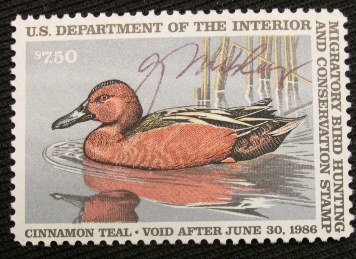 1985 U.S. Department of the Interior Migratory Bird Hunting Stamp, RW#52, OG, not hinged, F-VF, Signed by the Artist "Gerald Mobley".