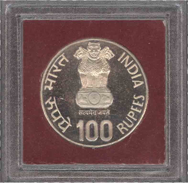 1985 UNC Set of Silver One Hundred Rupees Coin of Calcutta Mint.
