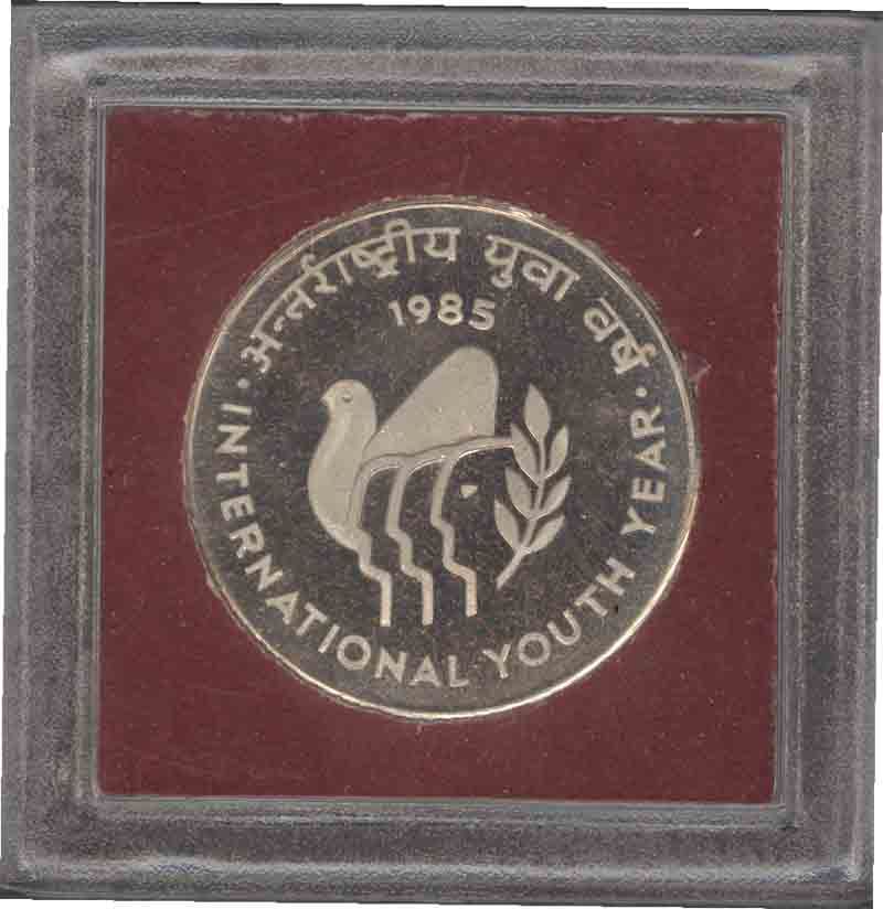 1985, UNC Set, International Youth Year, 100 Rupees, Calcutta Mint, (RB # 117),intact condition of the certificate and cover with acrylic case, Rare.