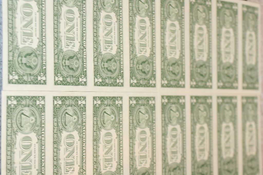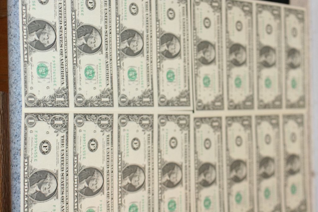 1985 US Federal Reserve Note $1; Atlanta GA Reserve; Lot of 4 Sheets 4 Bills each Sheet; Uncut Bills