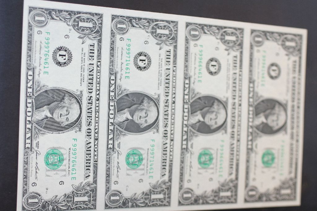1985 US Federal Reserve Note $1; Atlanta GA Reserve; Lot of 4; Uncut Bills