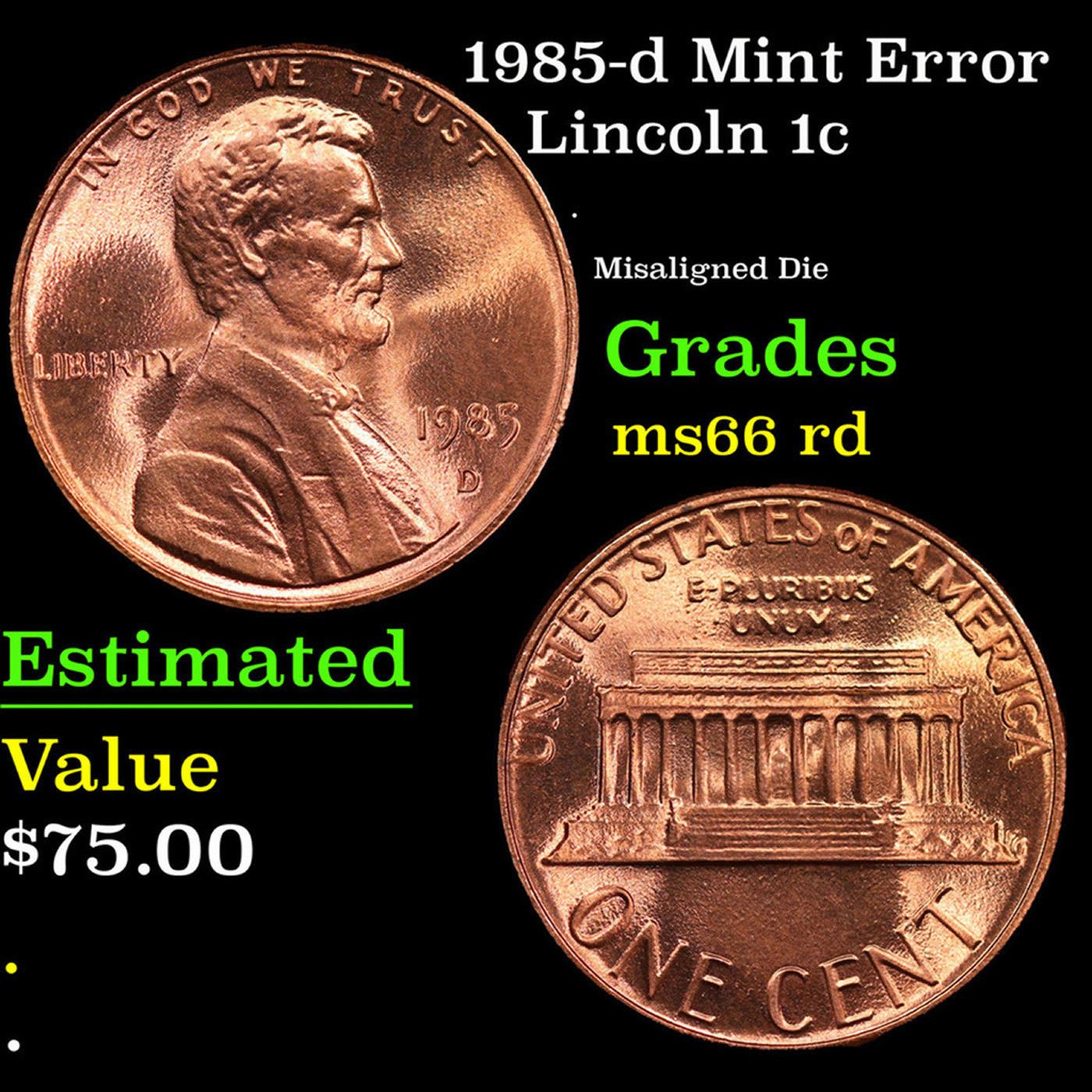 1985-d Mint Error Lincoln Cent 1c Grades GEM+ Unc RD.