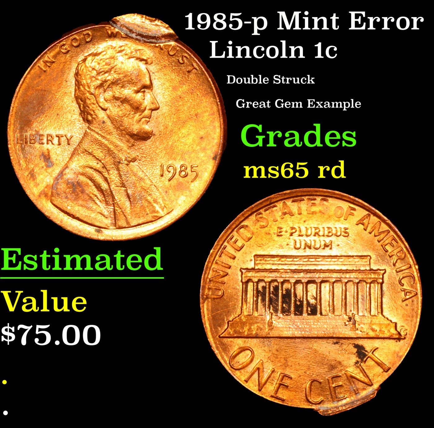 1985-p Mint Error Lincoln Cent 1c Grades GEM Unc RD.