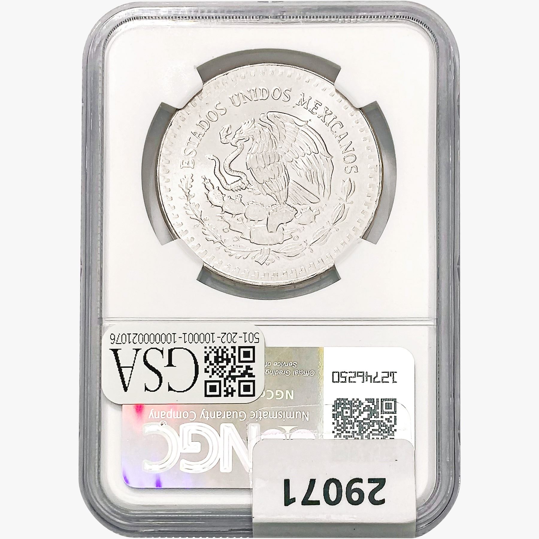 1985Mo 1oz. Silver Mexicanos Onza NGC MS65