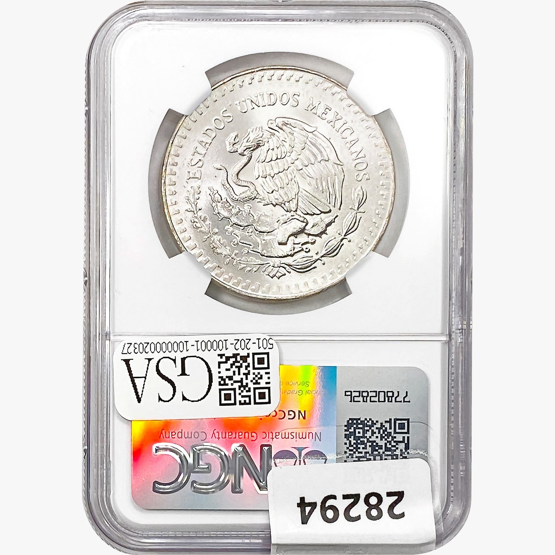 1985Mo 1oz. Silver Mexicanos Onza NGC MS66