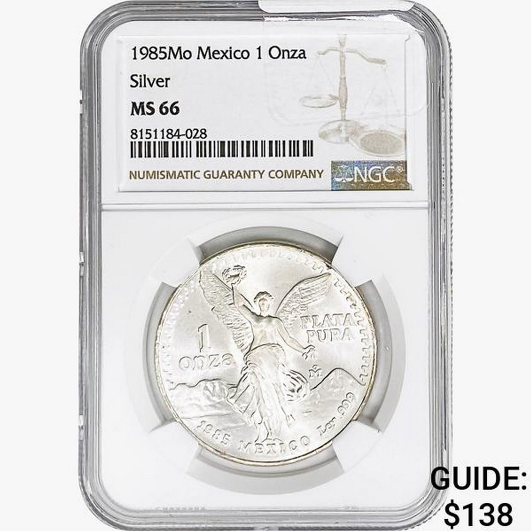 1985Mo 1oz. Silver Mexicanos Onza NGC MS66